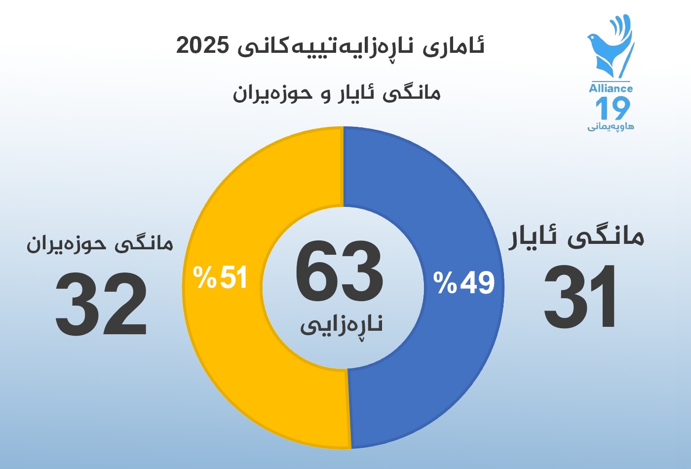 • (18) چالاكی لە سلێمانی، (8) چالاكی لە هەولێر، (1) چالاكی لە هەڵەبجە، (1) چالاكی لە ئیدارەی راپەرین، (4) چالاكیش لە ئیدارەی گەرمیان.